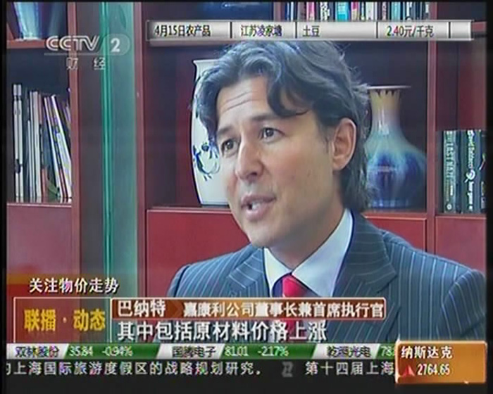 2011年4月16日,中央电视台《经济信息联播》对嘉康利公司董事长兼CEO罗杰·巴纳特的采访进行了报道。