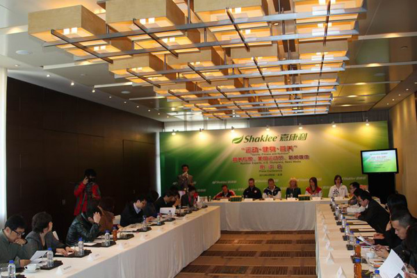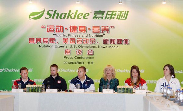 2013年4月8日上午,在北京柏悦酒店,国际权威抗衰老专家、体重管理专家、全美最佳医生洁米•麦克蒙纳斯博士及5名美国奥运运动员一行,应邀参加嘉康利公司主办的 “运动•健身•营养”座谈会。到场的记者分别来自CCTV、BTV、《光明日报》、《人民日报》、 《健康报》、《北京青年报》、《 北京晚报》《 北京晨报 》《国际商报》《 人民网》《 新华网》等 27家媒体。