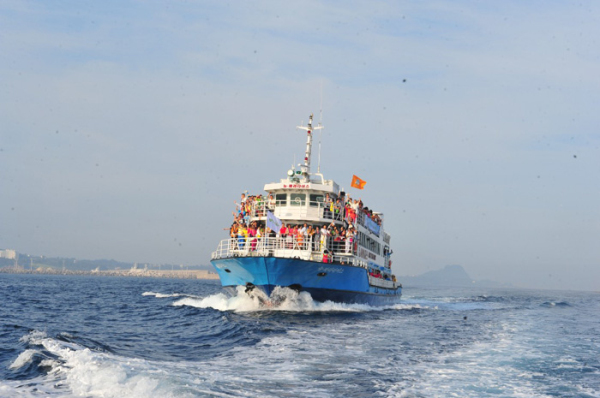 济州岛四面环海。看着那波涛起伏的大海,令人心胸也开阔了许多。一艘满载着嘉人的游轮从西归浦驶向海上的鸟岛,在海风的吹拂下,沿途的风光令大家陶醉。