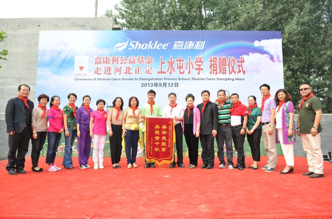 北京青基会、河北省青基会、共青团石家庄市委、正定县人大、县教育局等单位领导、嘉康利公司高管及经销商代表,正定上水屯小学全体师生出席了捐赠仪式。